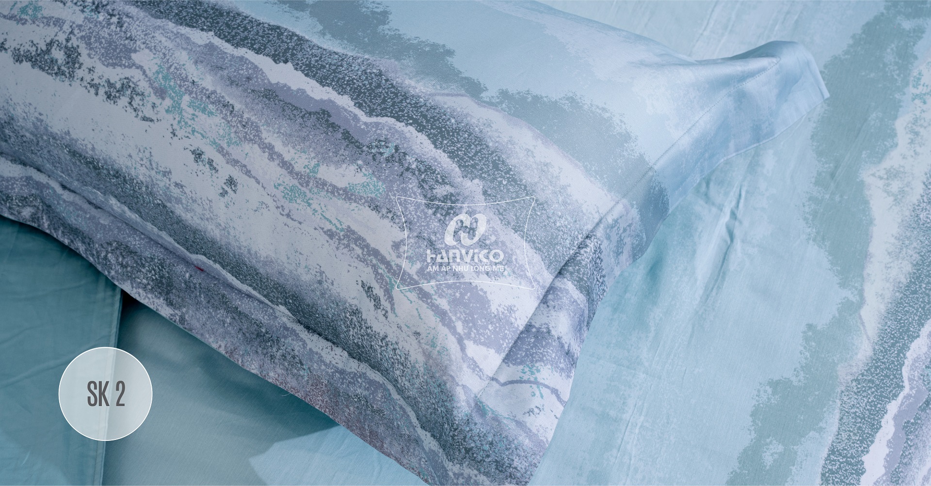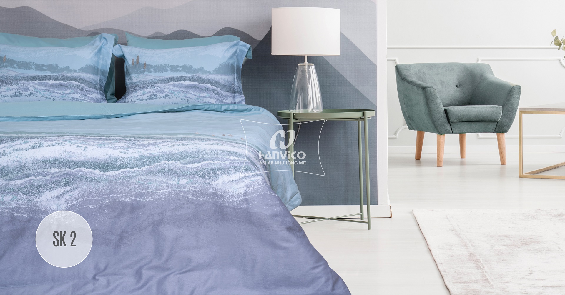 Bộ ga chun chần cao cấp Hanvico Soft & Smooth SK2 là bức tranh thiên nhiên hùng vĩ trên nền xanhnhẹ nhàng tạo nên sự hài hòa về đường nét mang đến cảm giác êm dịu, tươi mát cho phòng ngủ.