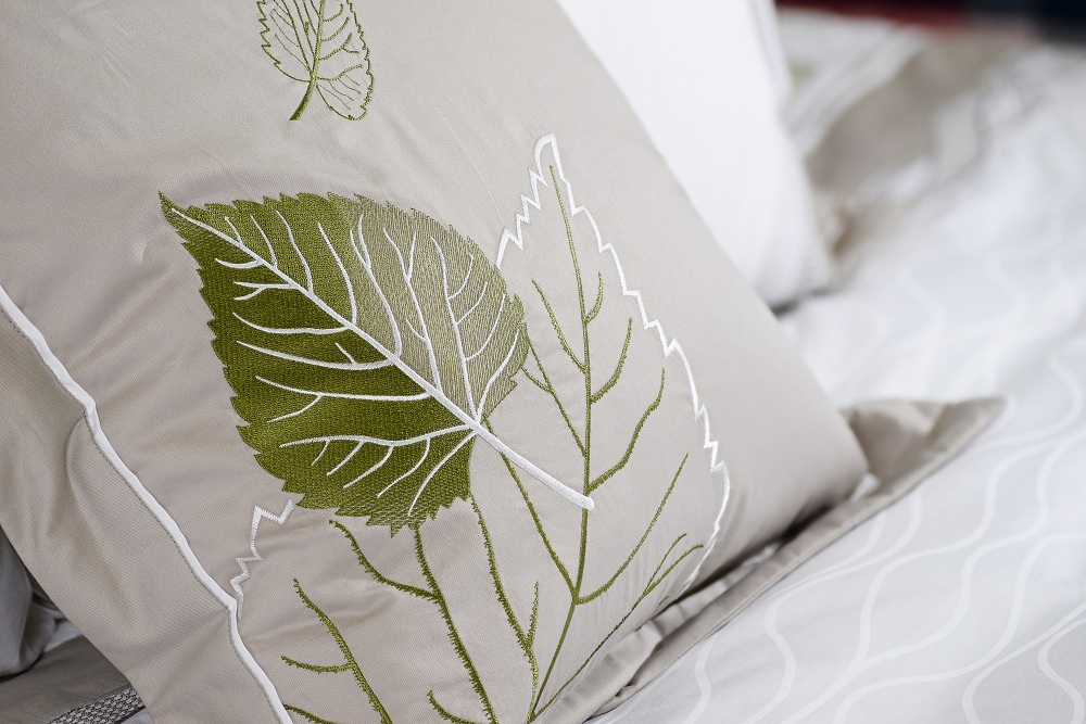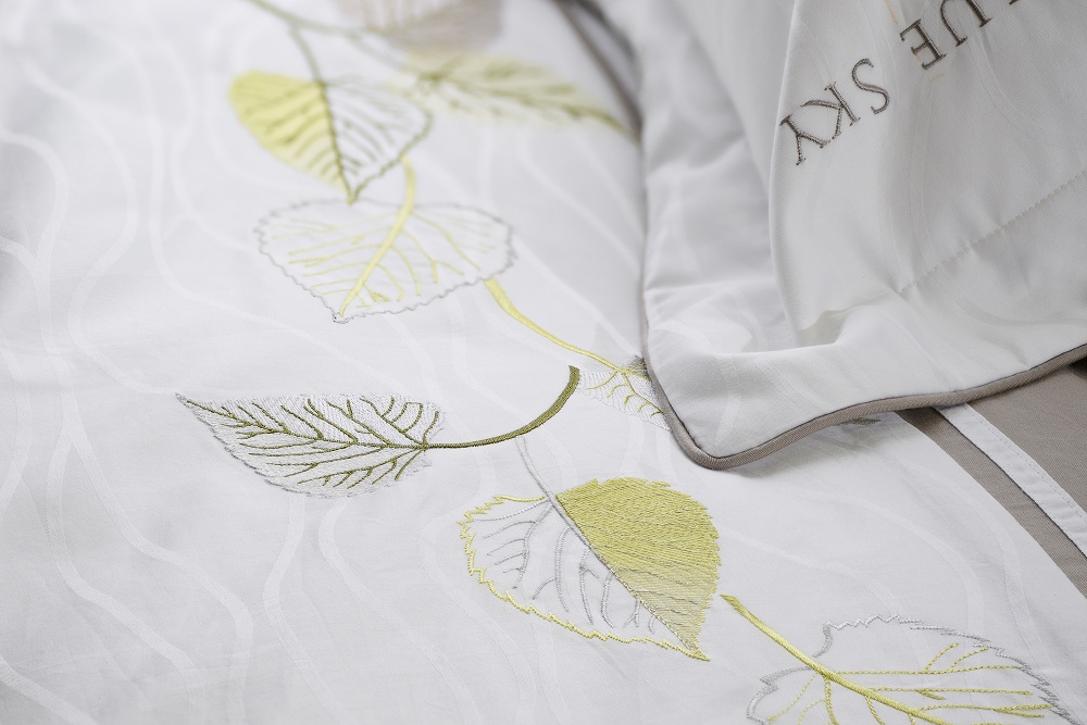 Bộ ga chun chần Hanvico KS1 được tạo nên nhờ kĩ thuật đáp vải lượn sóng và hoạt tiết lá được thêu nhẹ nhàng, thanh thoát.