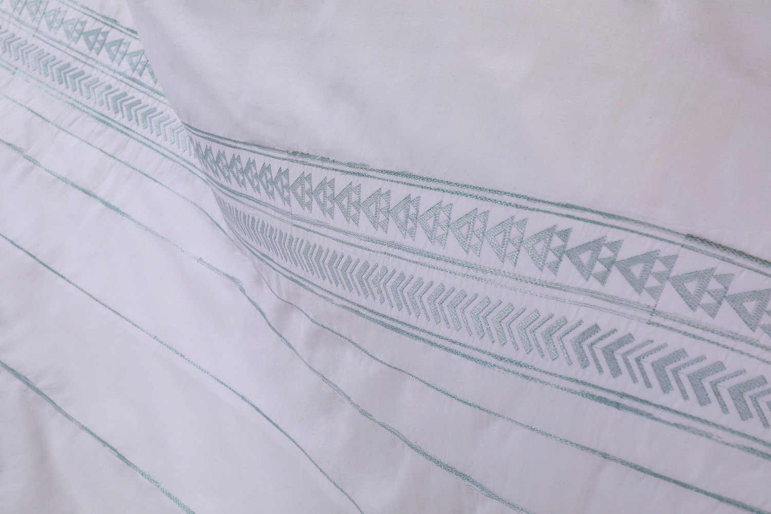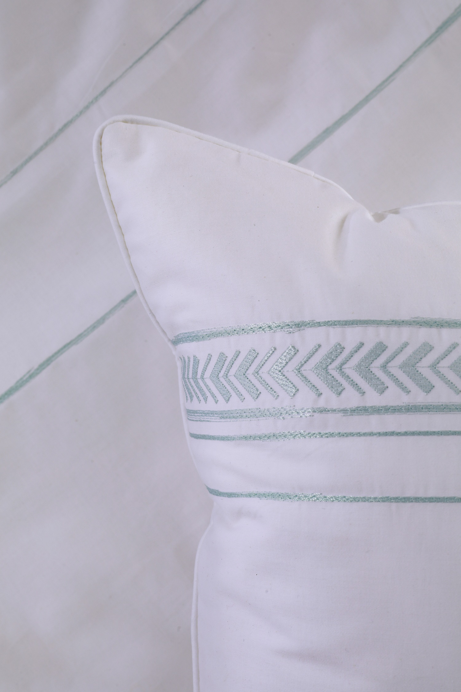 Bộ ga chun chần Hanvico KS7 mang sắc trắng tinh khôi cùng những dải họa tiết nhỏ xinh mang sắc xanh dịu mắt mang đến cho phòng ngủ của bạn là cảm giác thư thái và nét tinh tế tựa như không gian của các resot cao cấp nhất.