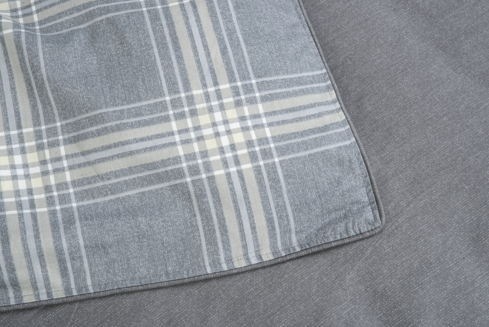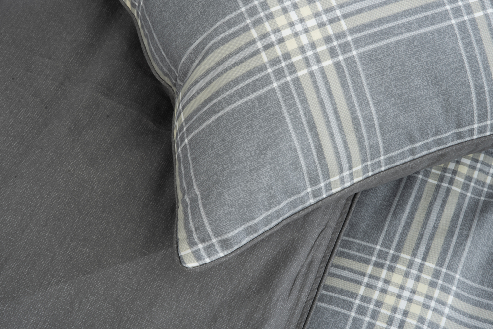 Bộ ga chun Hanvico Living – LV19 có gam ghi xám cùng họa tiết kẻ hiện đại mang lại cảm giác sang trọng cho không gian phòng ngủ của bạn.