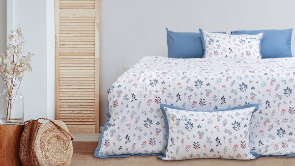 Bộ ga chun Hanvico My Youth – MY73 mang sắc xanh trắng dịu mát, nhã nhặn điểm xuyết các họa tiết hoa lá tạo không gian thư thái nhẹ nhàng cho không gian phòng ngủ. Chất vải mềm mịn, thông thoáng, tạo cảm giác thoải mái, dễ chịu cho người dùng suốt 4 mùa trong năm.