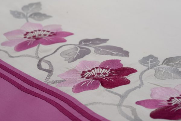Bộ ga Hanvico phủ thêu Blue Sky – BS50 mang sắc tím phối be sang trọng, cùng những hoạ tiết hoa thêu tỉ mỉ , chất vải mềm mịn, thông thoáng, tạo cảm giác thoải mái, dễ chịu cho người dùng suốt 4 mùa trong năm.