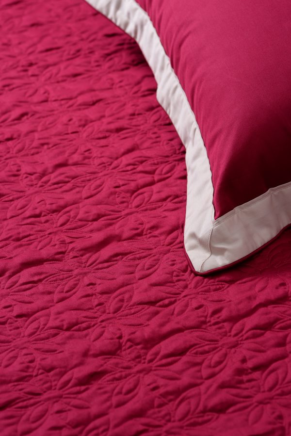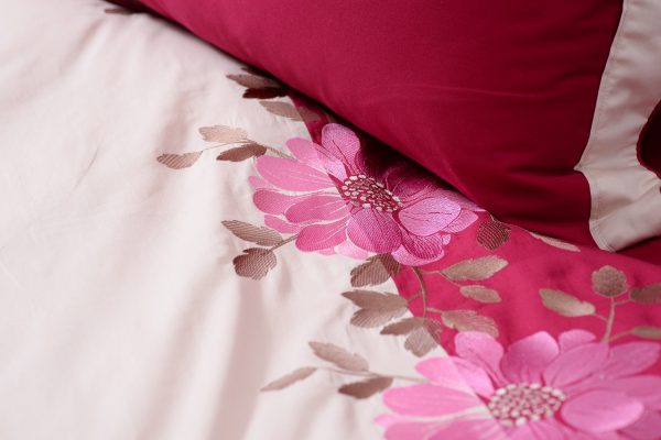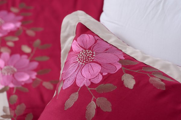 Bộ ga Hanvico phủ thêu Blue Sky – BS54 mang sắc đỏ phối be sang trọng, cùng những hoạ tiết hoa thêu nổi bật và tỉ mỉ, chất vải mềm mịn, thông thoáng, tạo cảm giác thoải mái, dễ chịu cho người dùng suốt 4 mùa trong năm.