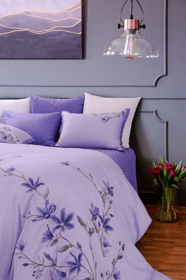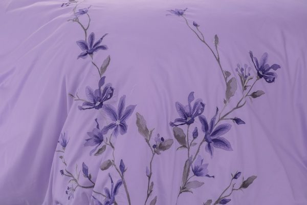 Bộ ga Hanvico phủ thêu Blue Sky – BS80 mang sắc tím rất nên thơ hòa cùng vẻ đẹp thanh thoát của những nhành hoa được thêu tỉ mỉ sẽ mang cảm giác lãng mạn lan tỏa khắp không gian.