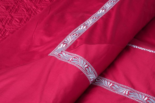 Bộ ga Hanvico phủ thêu Blue Sky – BS83 mang sắc đỏ nồng nàn cùng những chi tiết thêu tinh xảo tô điểm giúp không gian phòng ngủ thêm sang trọng, trang nhã.