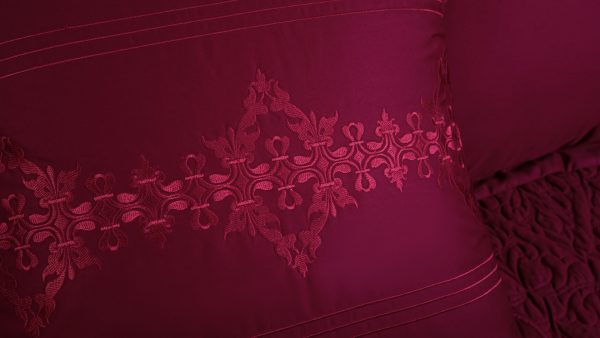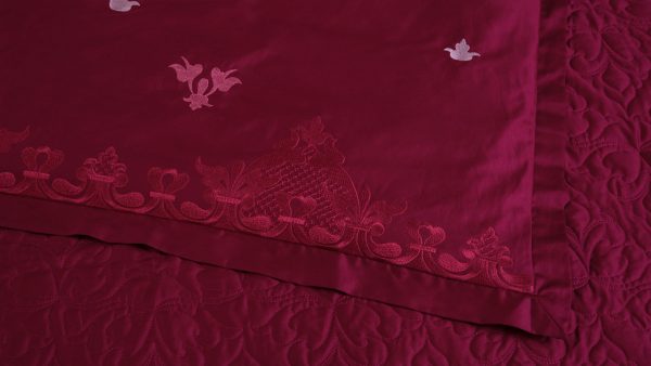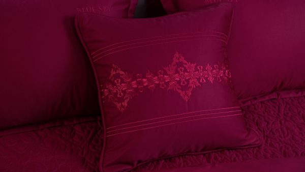 Bộ ga Hanvico phủ thêu Blue Sky - BSM101 mang gam đỏ thẫm sang trọng tô điểm họa tiết thêu tinh tế mang đến sự mới mẻ và ấn tượng cho không gian phòng ngủ.