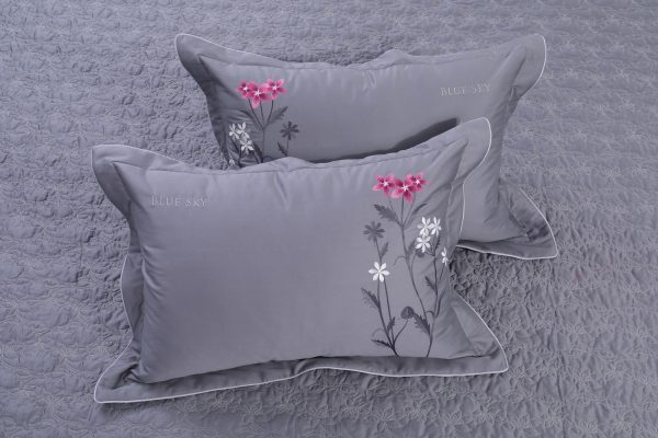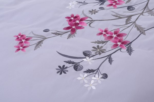 Bộ ga Hanvico phủ thêu Blue Sky – BSM61 mang sắc ghi nền nã tinh tế với hoạ tiết hoa thêu nổi bật mang đến một không gian sang trọng thư thái.