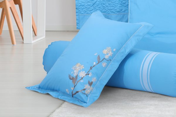 Bộ ga Hanvico phủ thêu Blue Sky – BSM65 phong cách phù hợp với nhiều không gian phòng ngủ.