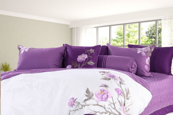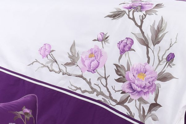 Bộ ga Hanvico phủ thêu Blue Sky – BSM67 có sắc tím chủ đạo chinh phục những khách hàng yêu thích vẻ đẹp lãng mạn, bay bổng. Từng cành hoa nở rộ được thêu sắc nét, sinh động càng làm cho tổng thể thiết kế trở nên yêu kiều, mềm mại.