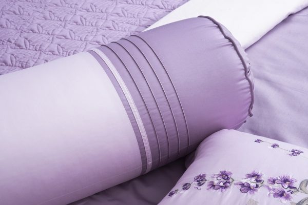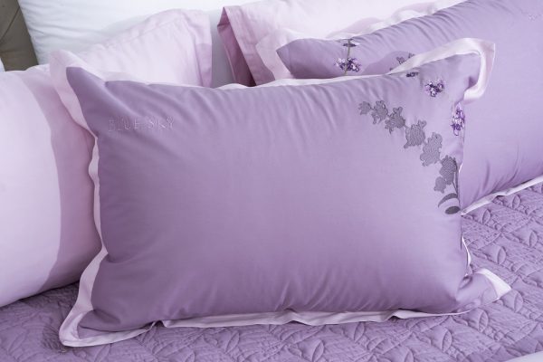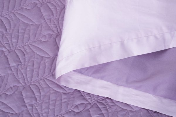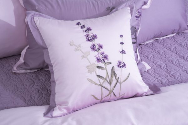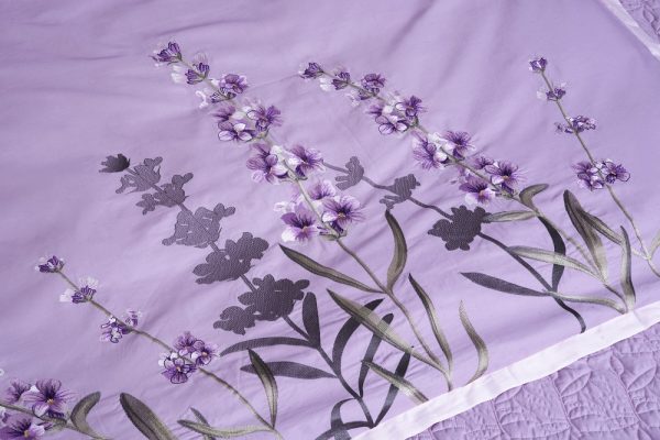 Bộ ga Hanvico phủ thêu Blue Sky - BSM94 mang sắc tím lavender nhã nhặn trọng tô điểm họa tiết hoa tinh tế.