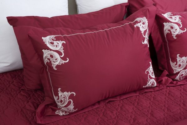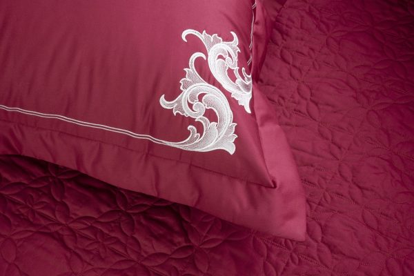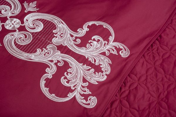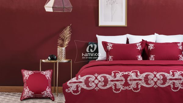 Bộ ga Hanvico phủ thêu Blue Sky - BSM98 mang gam đỏ sang trọng tô điểm họa tiết trắng tinh tế mang đến sự mới mẻ và ấn tượng cho không gian phòng ngủ.