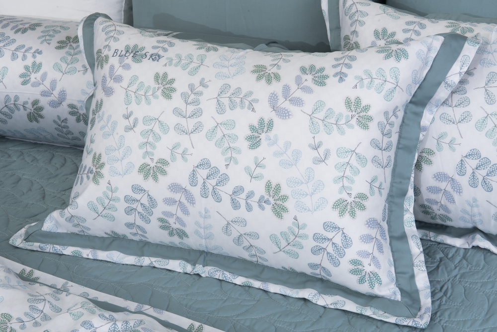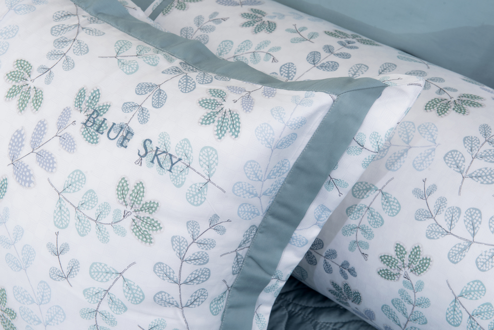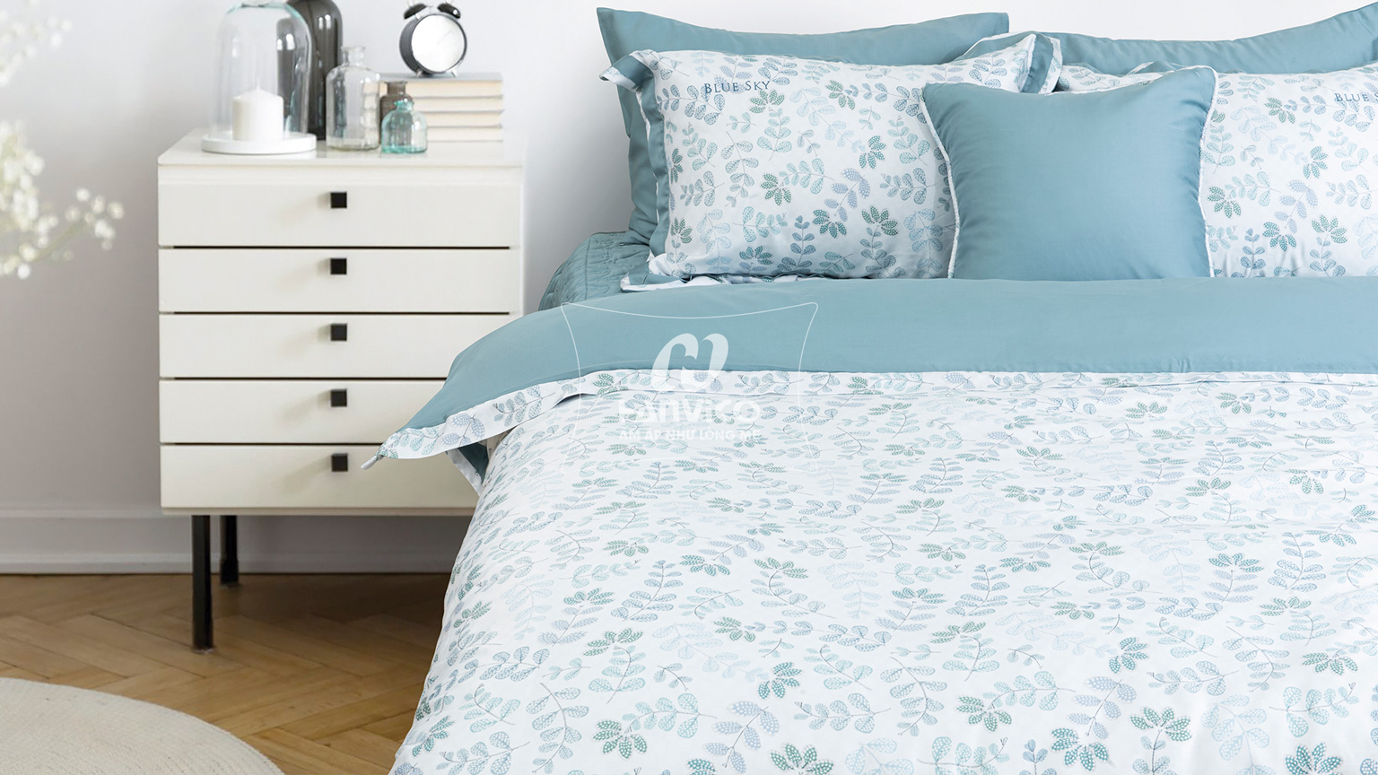 Bộ ga phủ Hanvico Blue Sky HV65 có chất liệu vải Tencel mềm mượt, thoáng mát với hoạ hoa lá tươi trẻ trên nền vải trắng xanh như mang thiên nhiên trong lành đến không gian phòng ngủ.