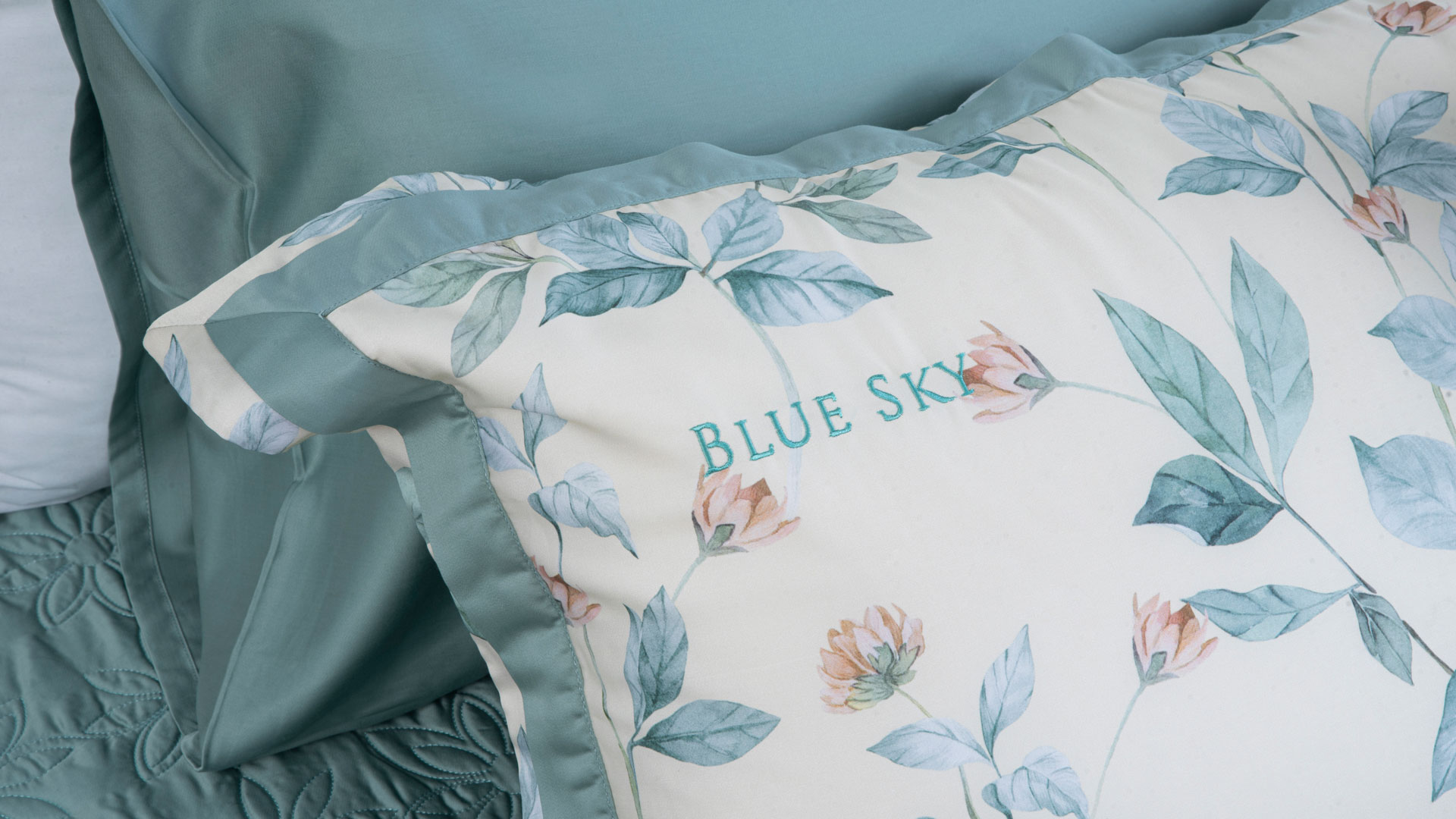 Bộ ga phủ Hanvico Blue Sky HV67 có chất liệu vải Tencel mềm mượt, thoáng mát với hoạ hoa lá tươi mát trên nền vải trắng xanhnhư mang thiên nhiên trong lành đến không gian phòng ngủ.