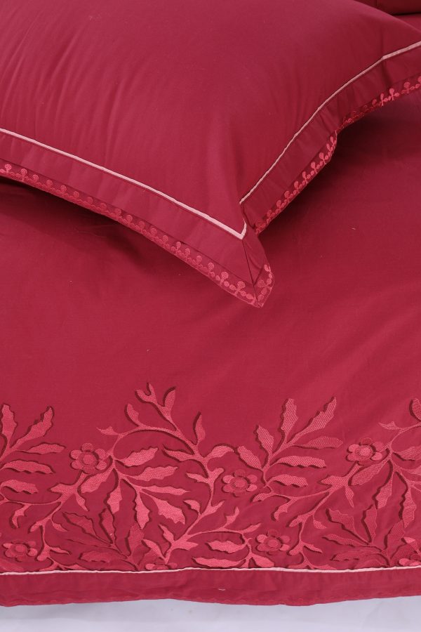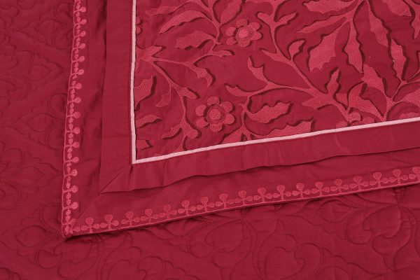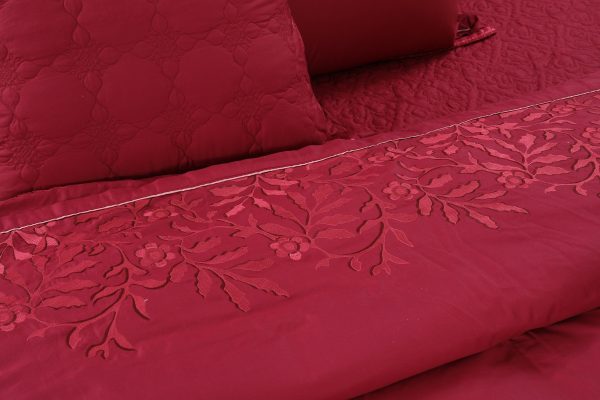 Bộ ga phủ Hanvico Royal Award RA41 mang màu sắc đỏ kiêu sa cùng những hoạ tiết thêu lấy cảm hứng từ thiên nhiên mang đến sự lãng mạng và sang trọng cho không gian phòng ngủ.