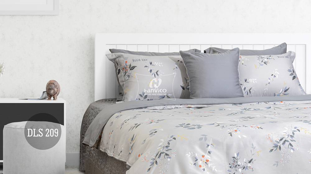 Bộ Hanvico Blue Sky Cotton T – DLS209 mang gam ghi nhã nhặn cùng họa tiết hoa lá sinh động mang lại cảm giác sang trọng và tinh tế cho không gian phòng ngủ của bạn.