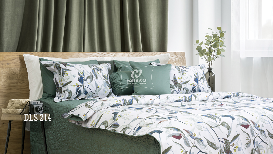 Bộ Hanvico Blue Sky Cotton T – DLS214 mang gam xanh nhã nhặn cùng họa tiết lá cây sinh động mang lại cảm giác sang trọng và tinh tế cho không gian phòng ngủ của bạn.