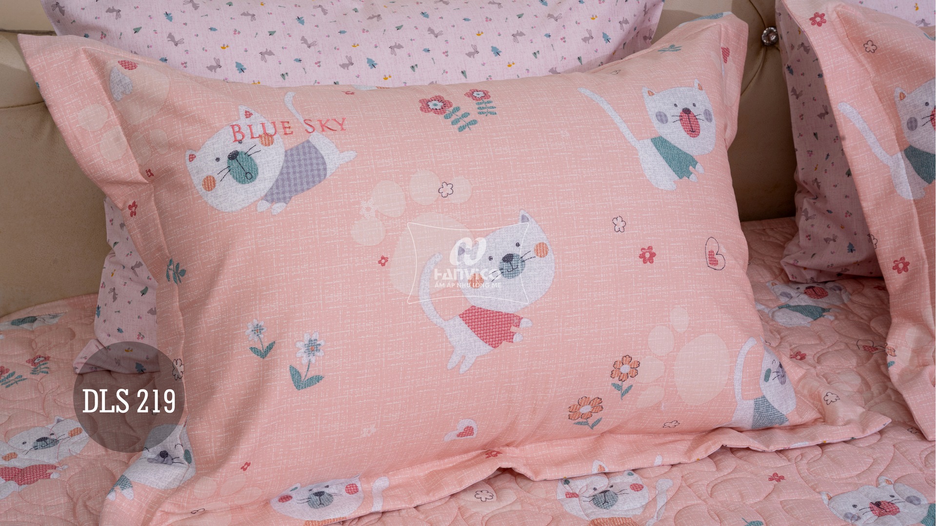 Bộ Hanvico Blue Sky Cotton T – DLS219 mang gam màu hồng cam tươi sáng, cùng họa tiết ngộ nghĩnh mang sự trẻ trung và dễ thương cho không gian phòng ngủ của bạn.