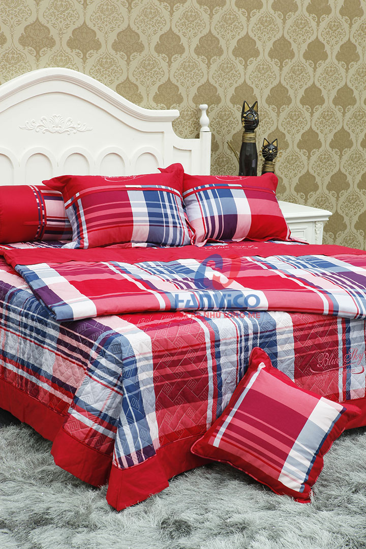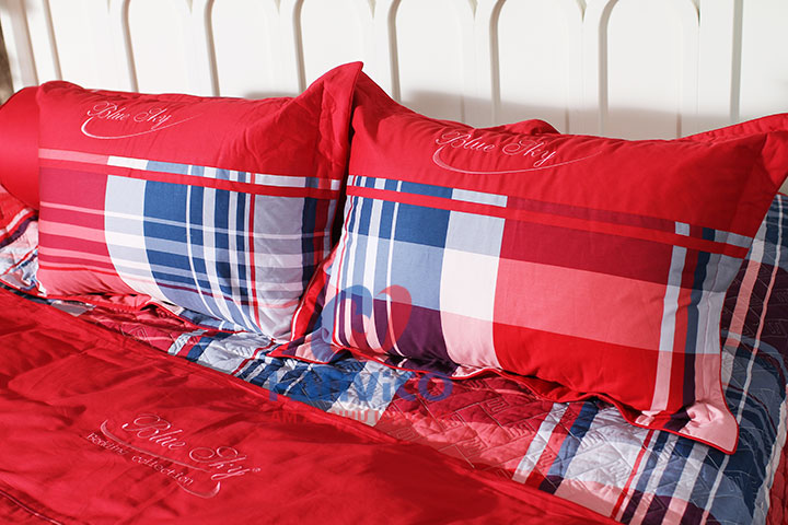 Bộ Hanvico Blue Sky CTM DL99 mang gam màu đỏ nổi bật cùng họa tiết kẻ nổi bật mang đến sự hiện đại, cá tính cho không gian phòng ngủ.