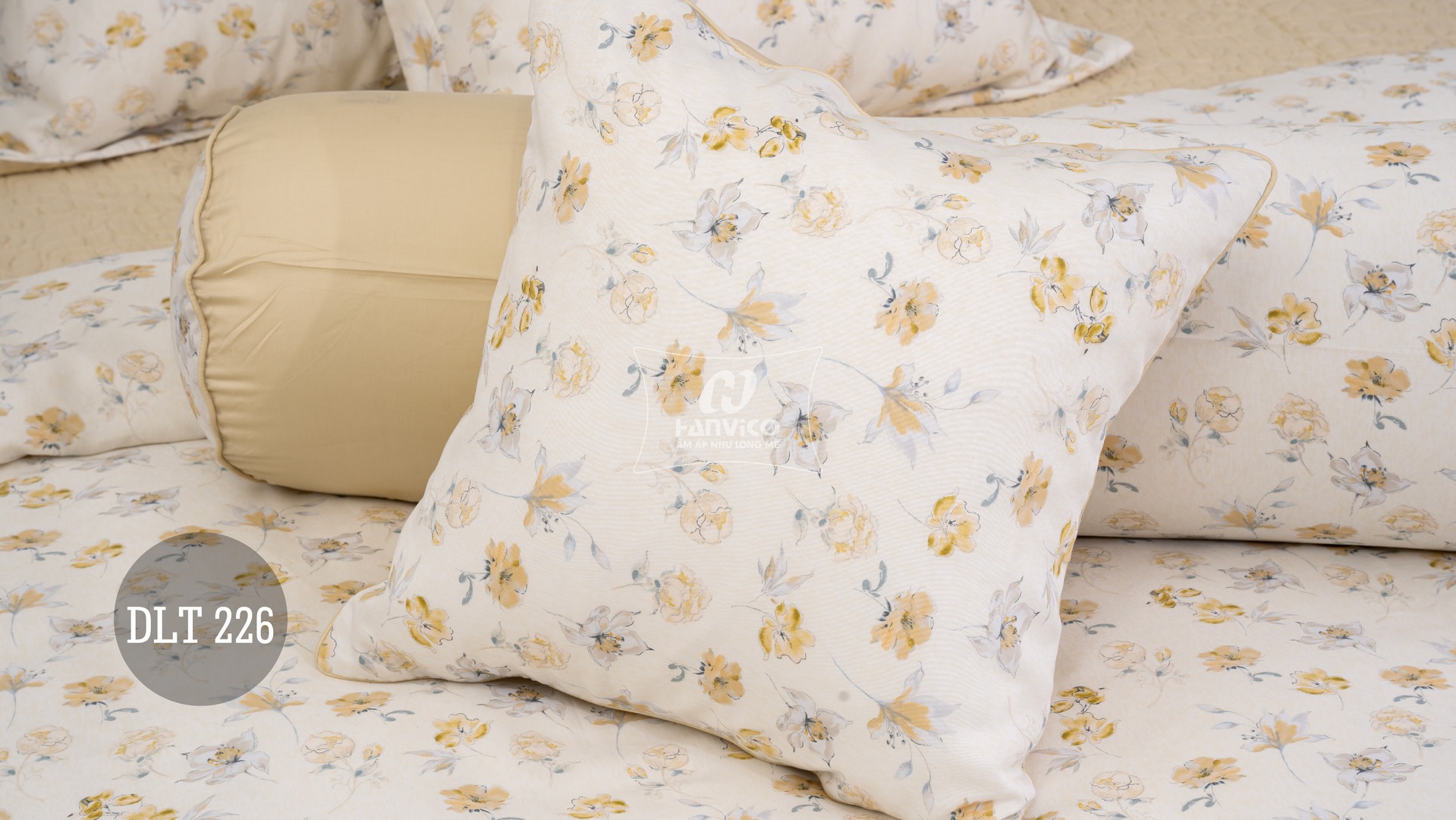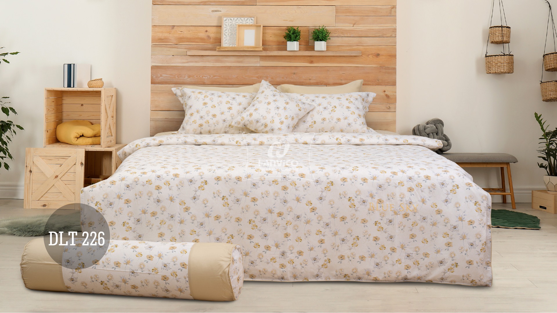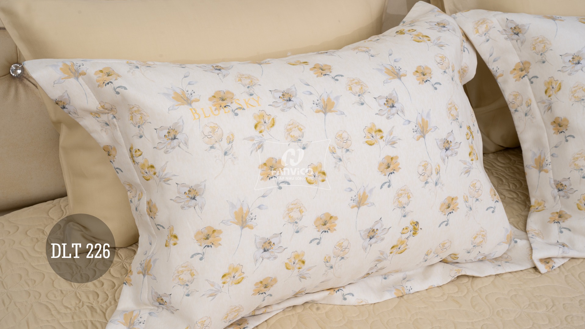 Bộ Hanvico Blue Sky Tencel – DLT226 mang gam màu tươi sáng nhã nhặn, cùng họa tiết hoa lá sinh động mang lại cảm giác sang trọng và tinh tế cho không gian phòng ngủ của bạn.