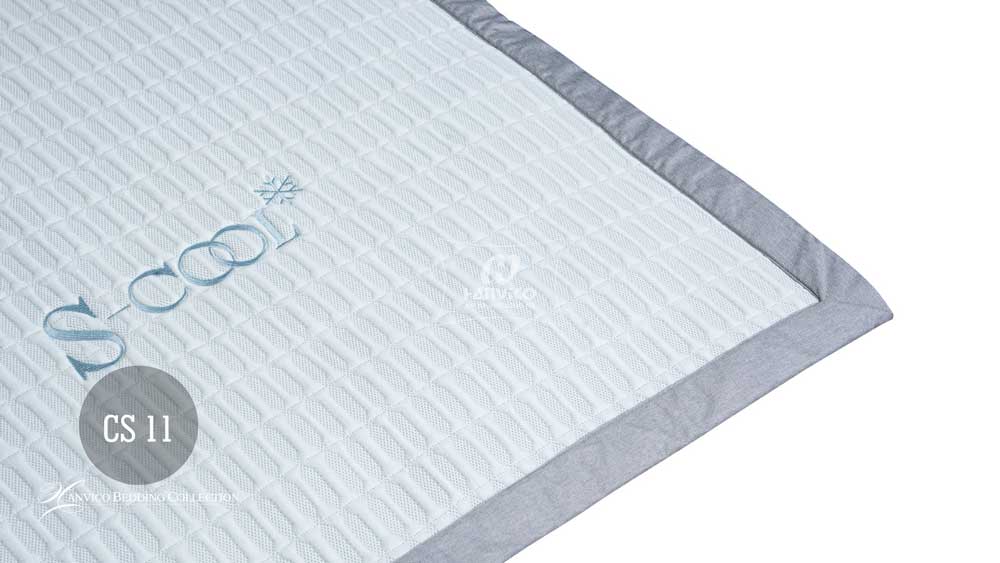 Cấu tạo sợi – 30% sợi S- Cool – Polythylene có tính năng làm mát, 60% sợi Polyester, 10% sợi Spandex co giãn mang lại cảm giác mát, khô thoáng, thoải mái cho người nằm.