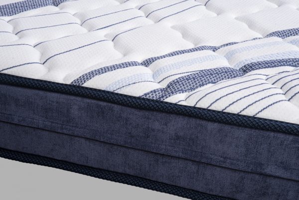 - Tên đệm được thêu tinh tế trên thành đệm được sử dụng vải cao cấp bền chắc, chậm cháy, kháng khuẩn và chống tĩnh điện.